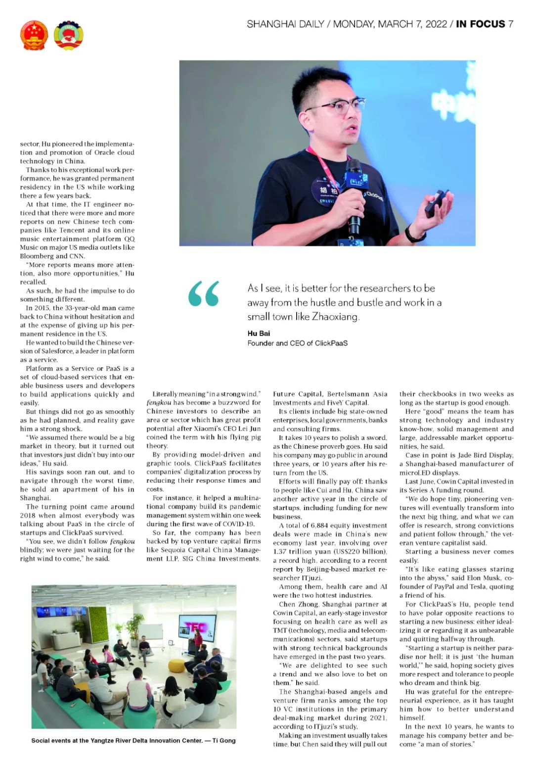 【创业故事】《上海日报》专访龙八国际官方网站入口创始人、CEO胡柏,探究其创业背后的故事